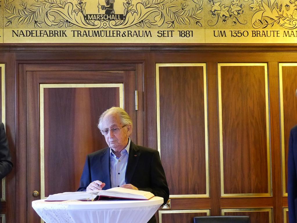 Der KZ-Überlebende Abba Naor hat sich in das Goldene Buch der Stadt eingetragen.