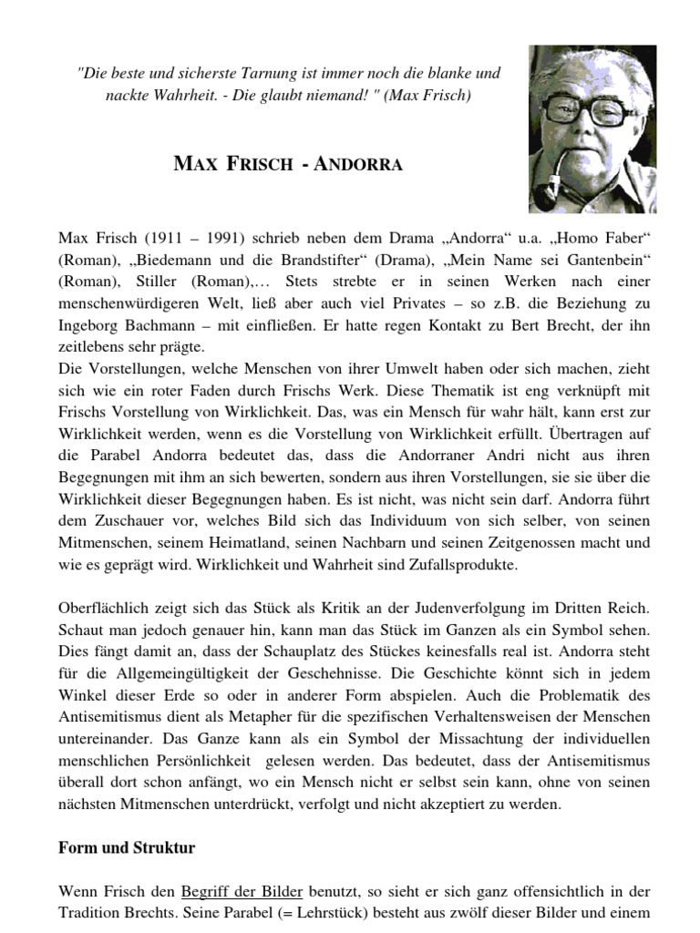 Andorra Inhaltsangabe Frisch Ubungen